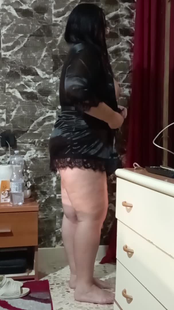 Полная брюнетка зрелого возраста демонстрирует себя напоказ перед мужем.