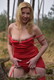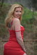 Блондинка в красном комплектике и платье , обнажается на фоне природы