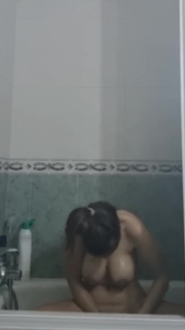 Девушка принимает душ. Только посмотрите на её широкие бёдра и узкую талию. Просто мечта.