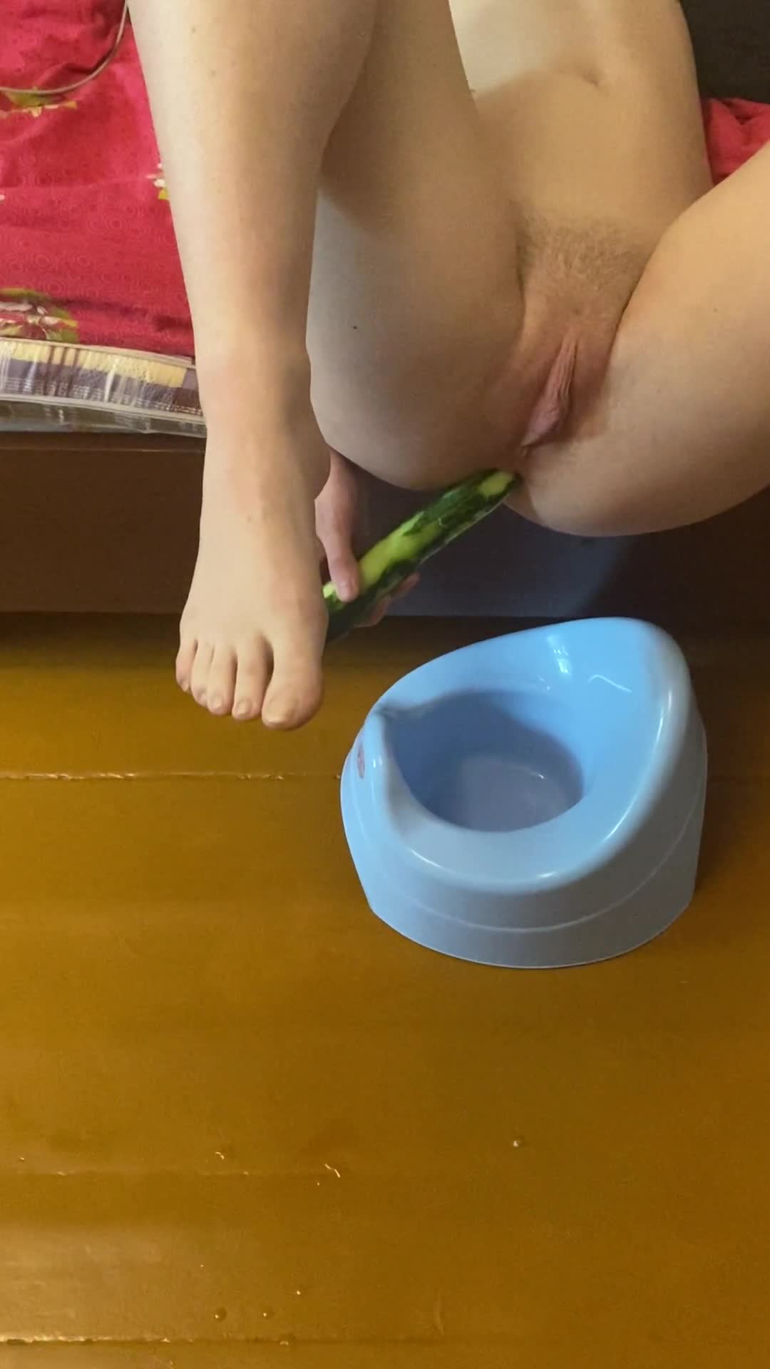 Писает с огурцом в попе