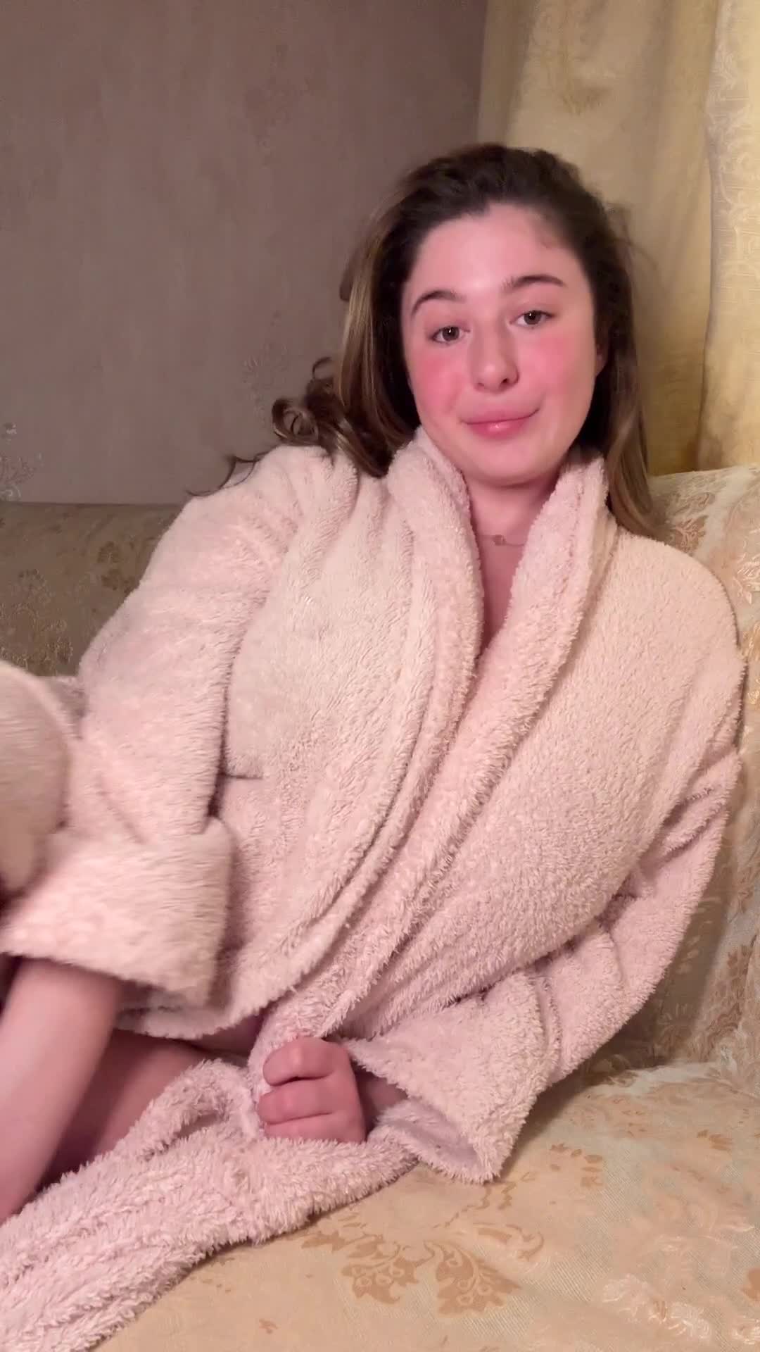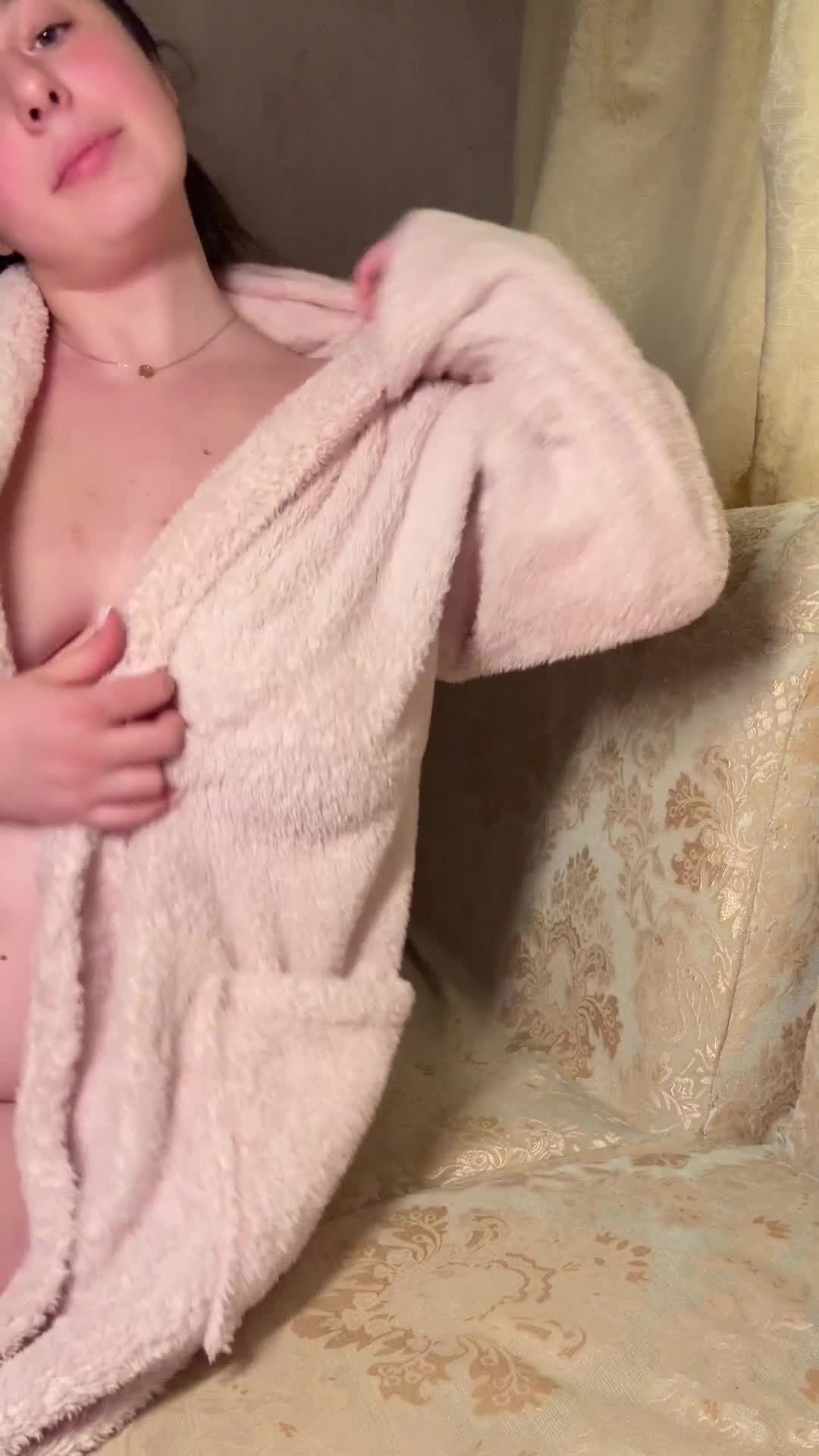 Девушка распахнув халат продемонстрировала наливную грудь