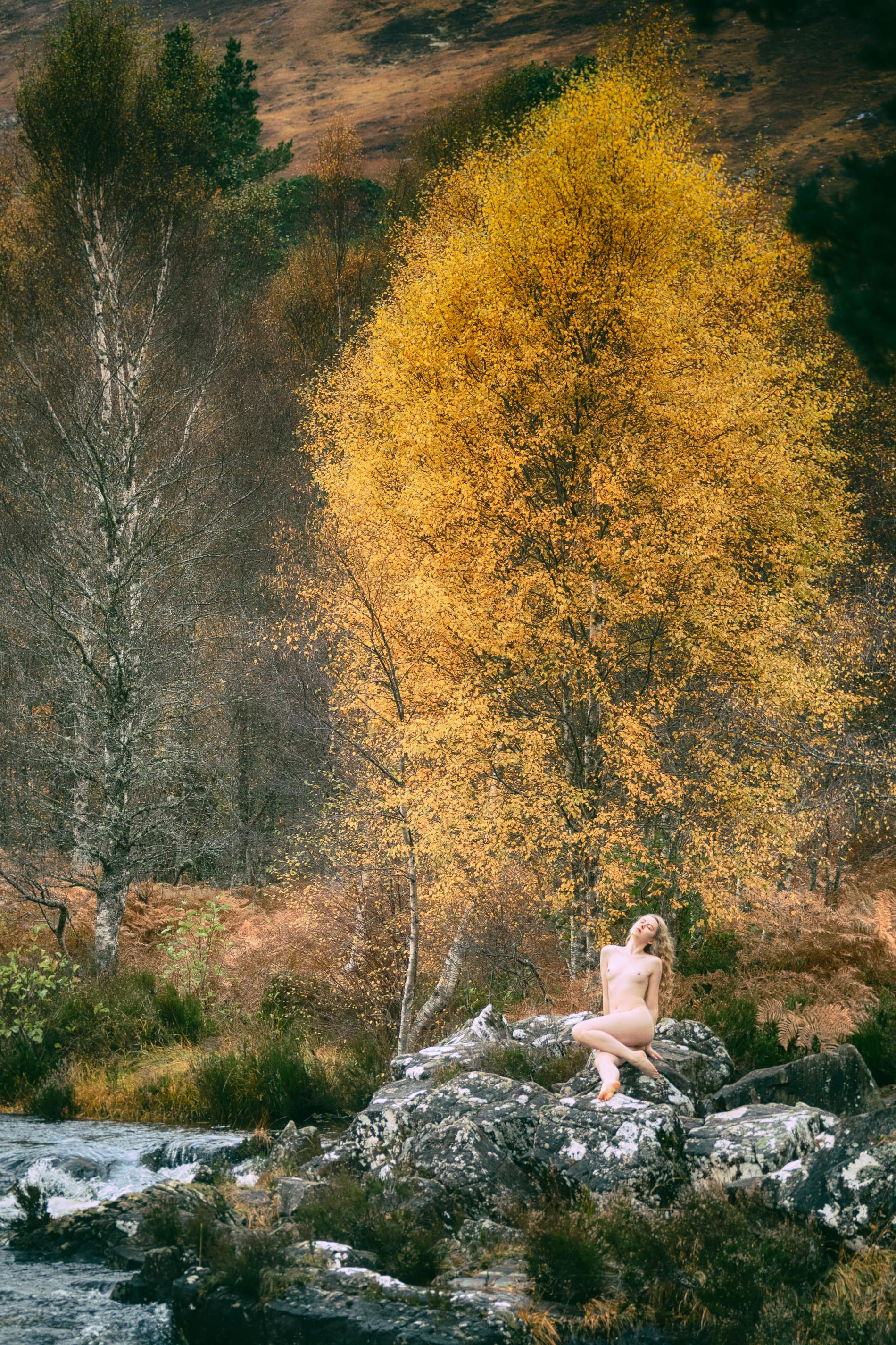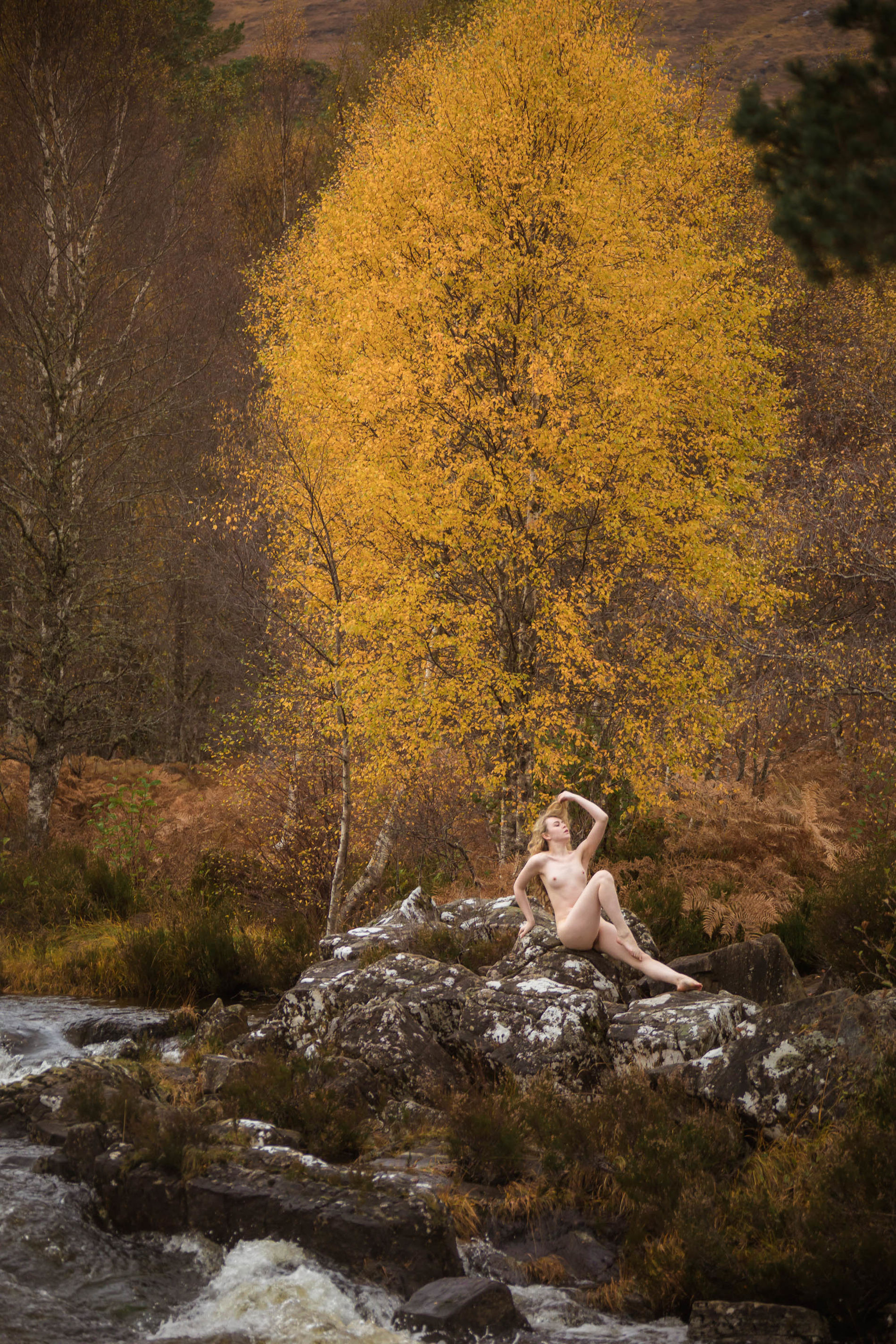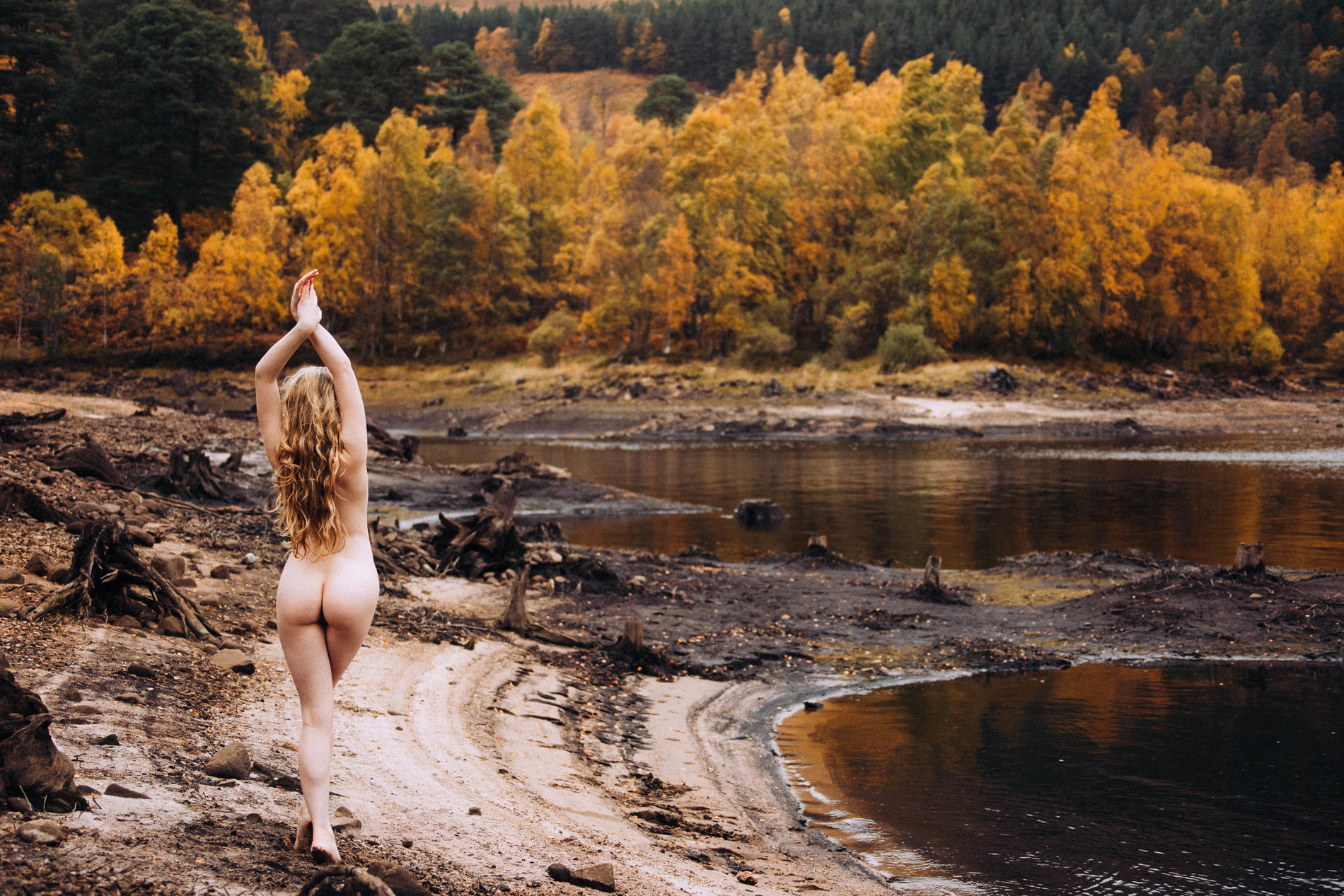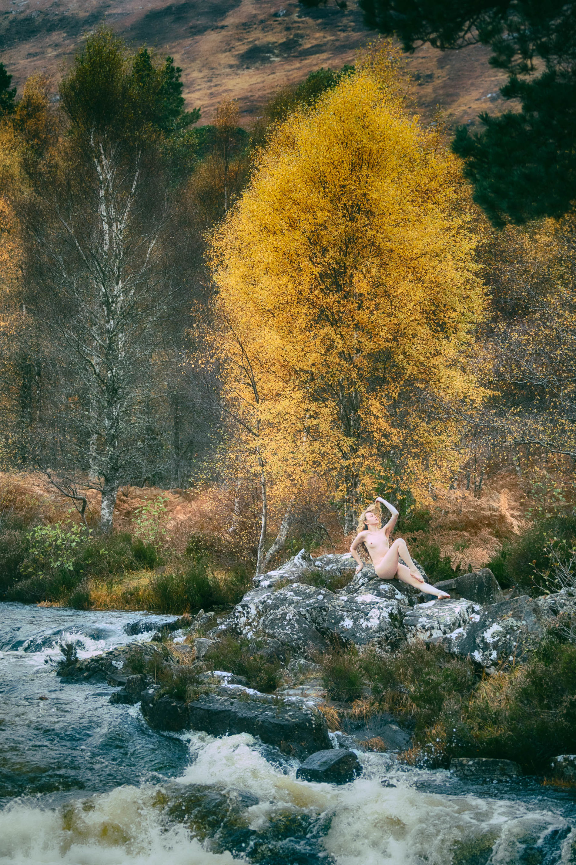 Блондинка среди ветреных холмов Шотландии