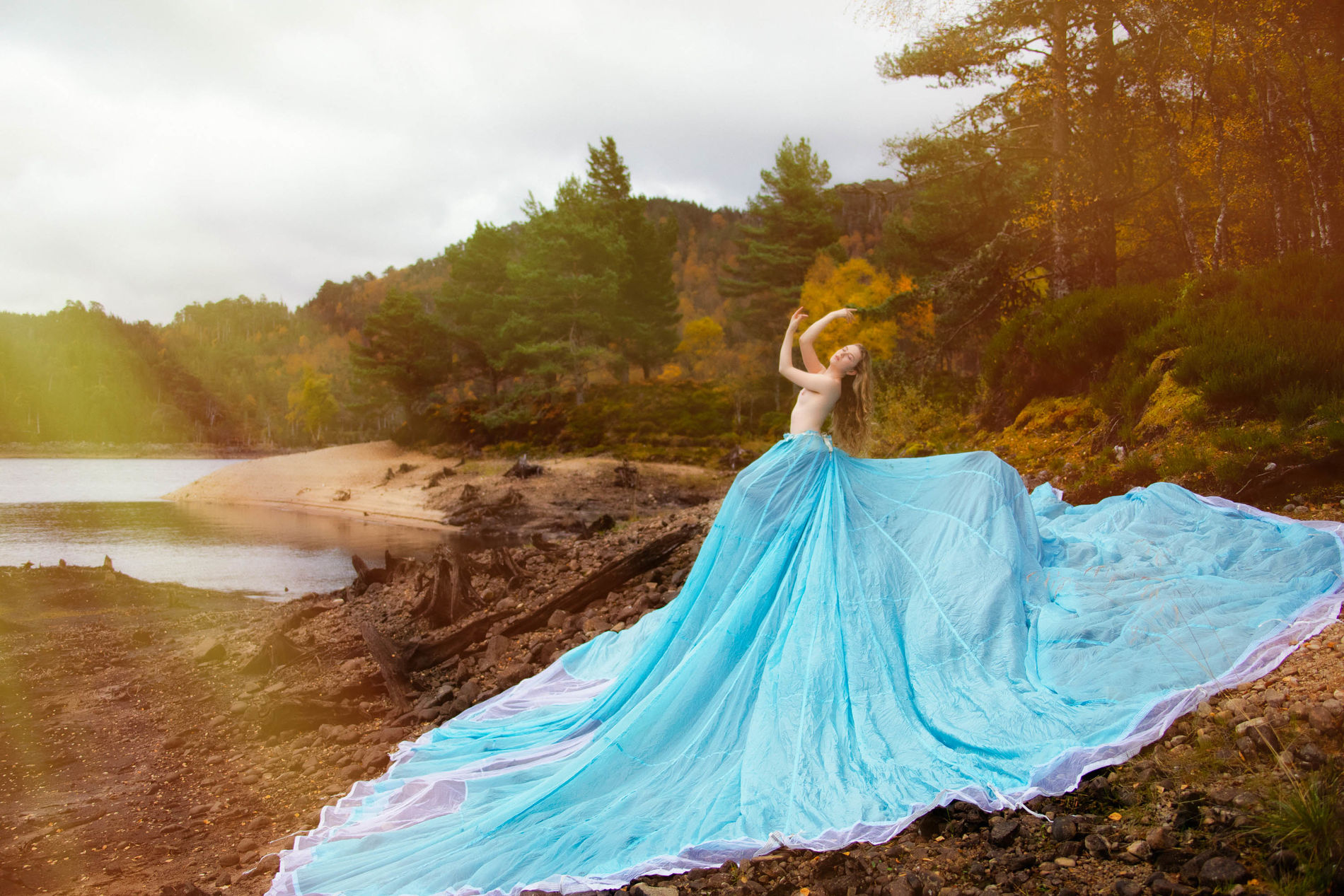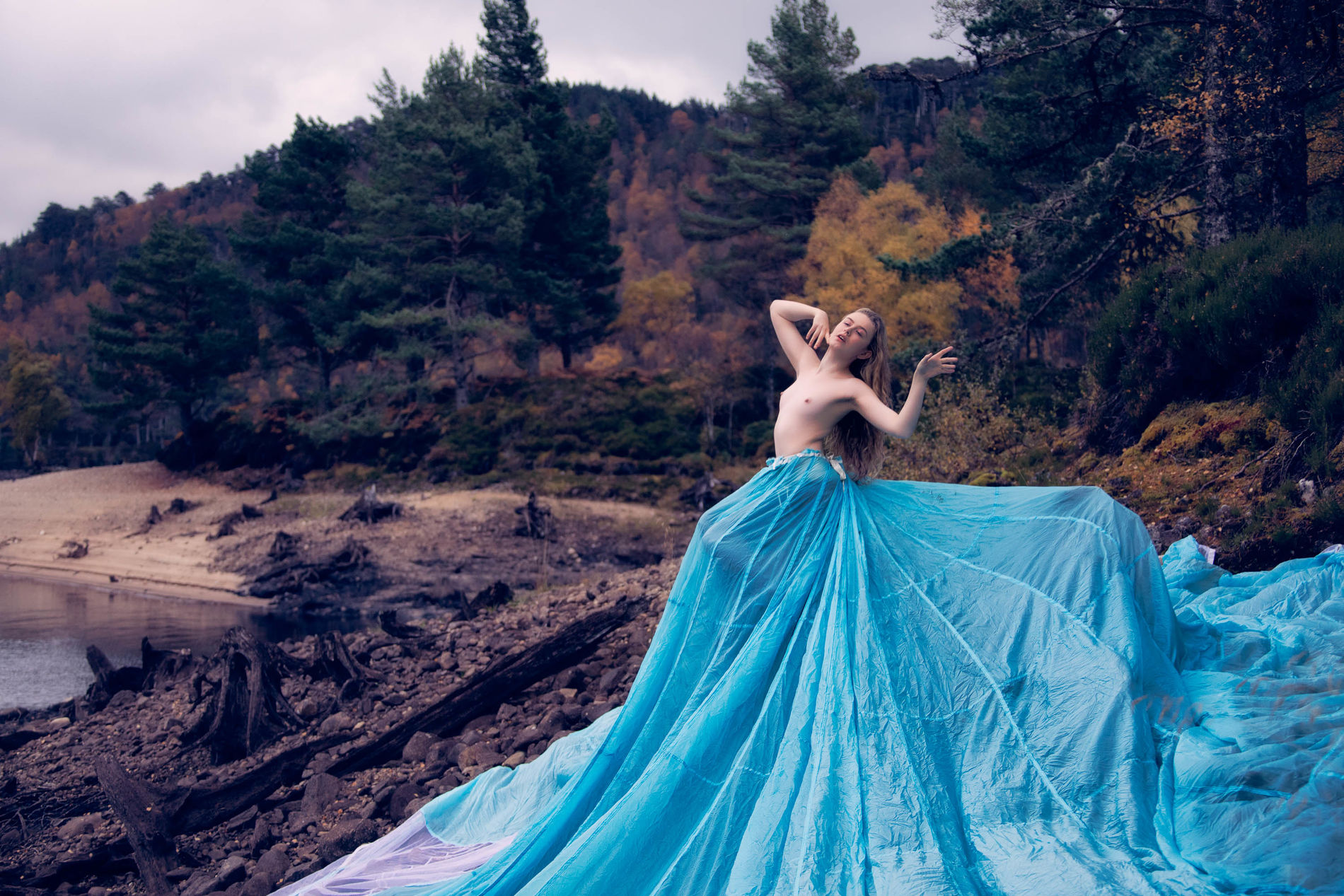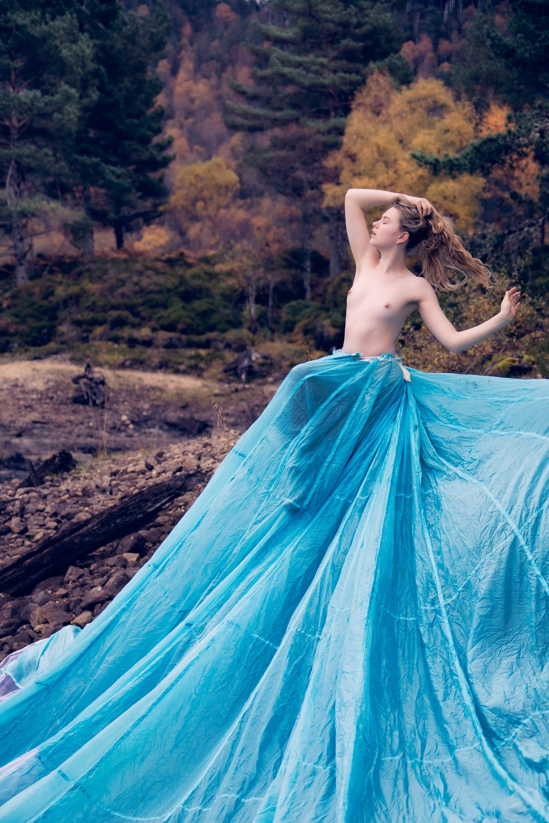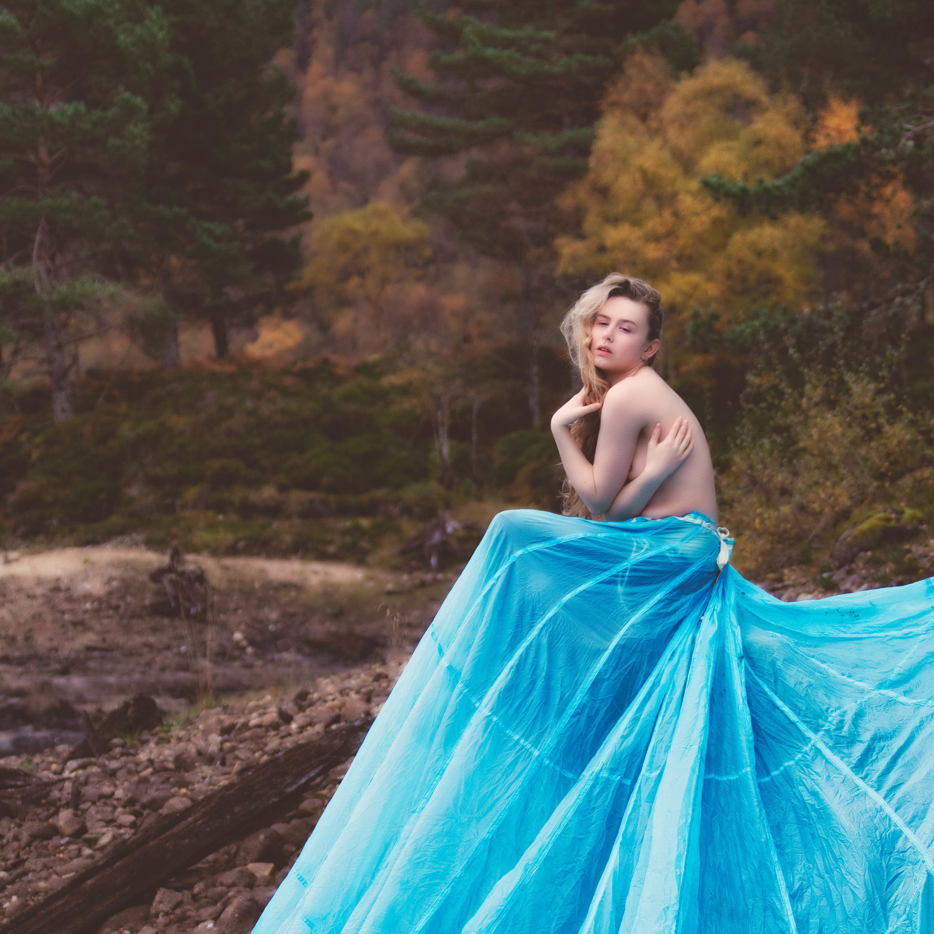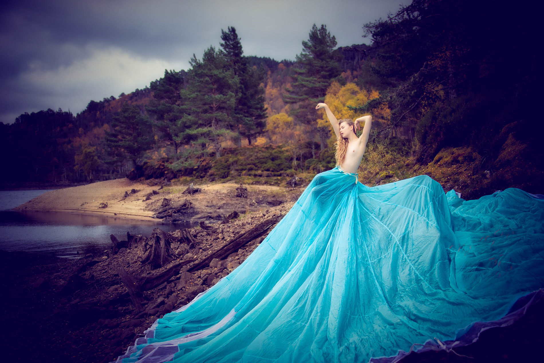 Блондинка среди ветреных холмов Шотландии