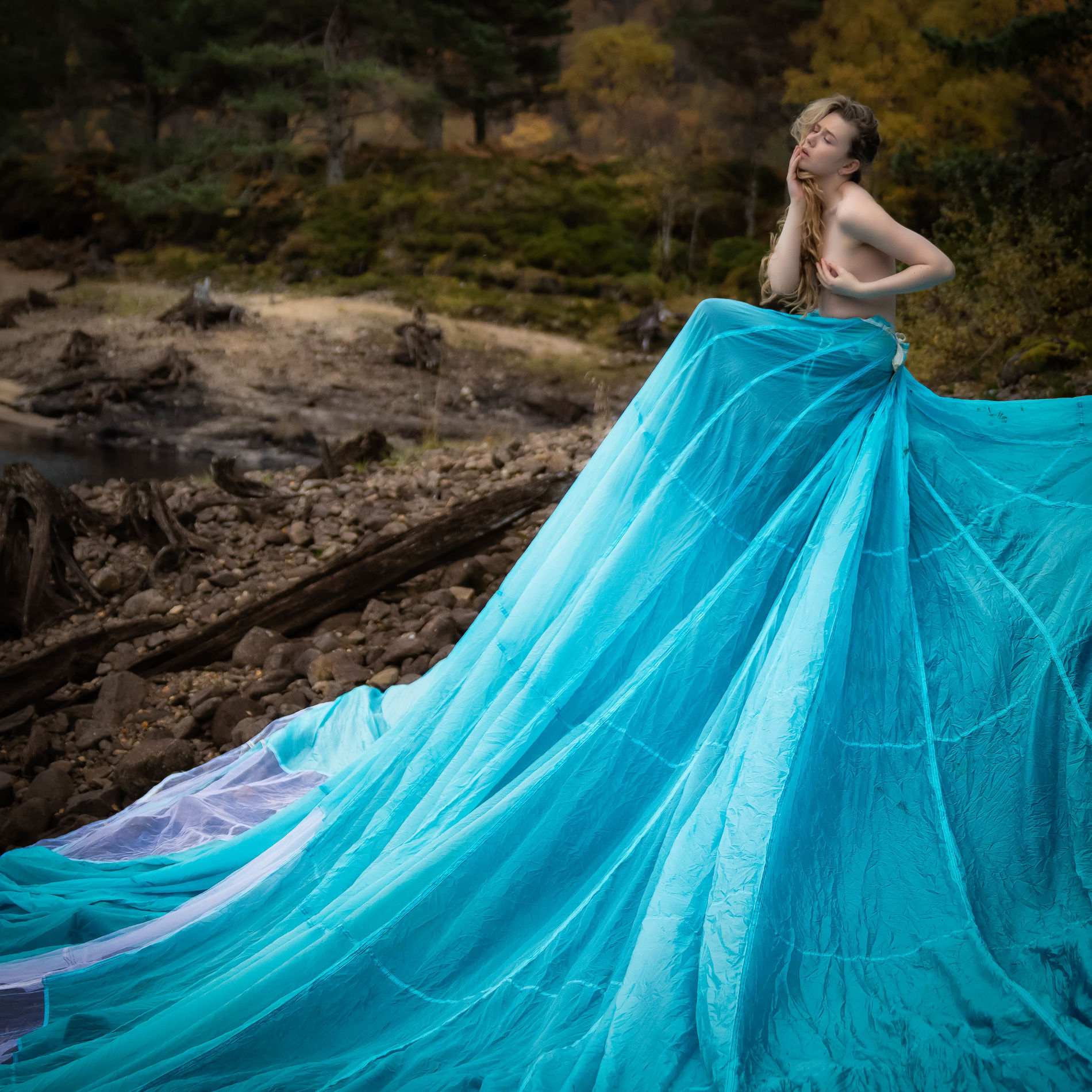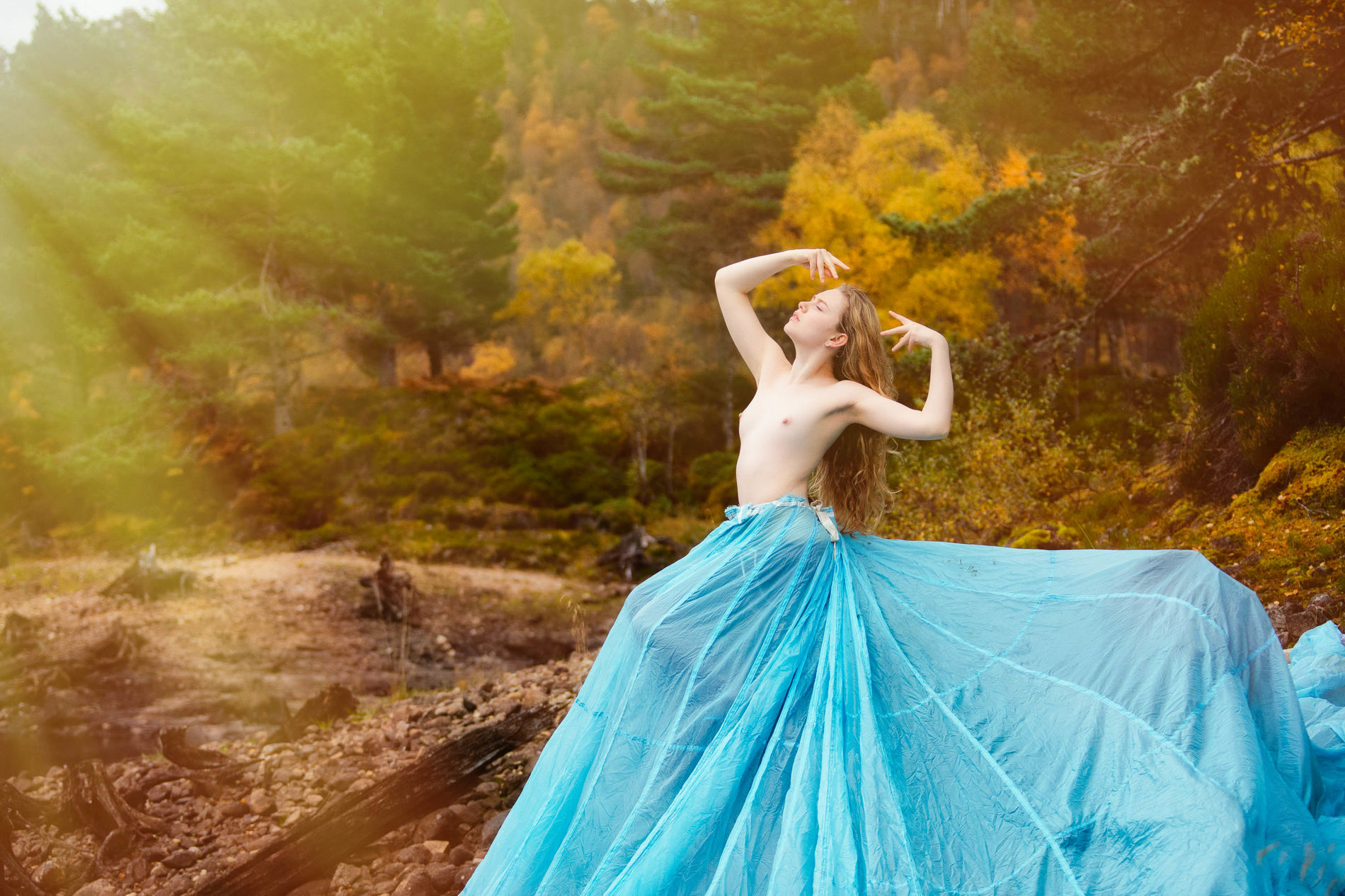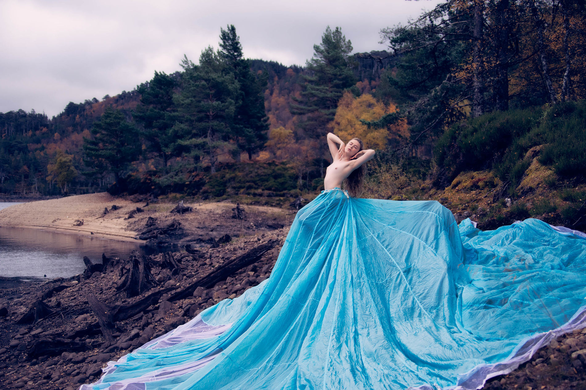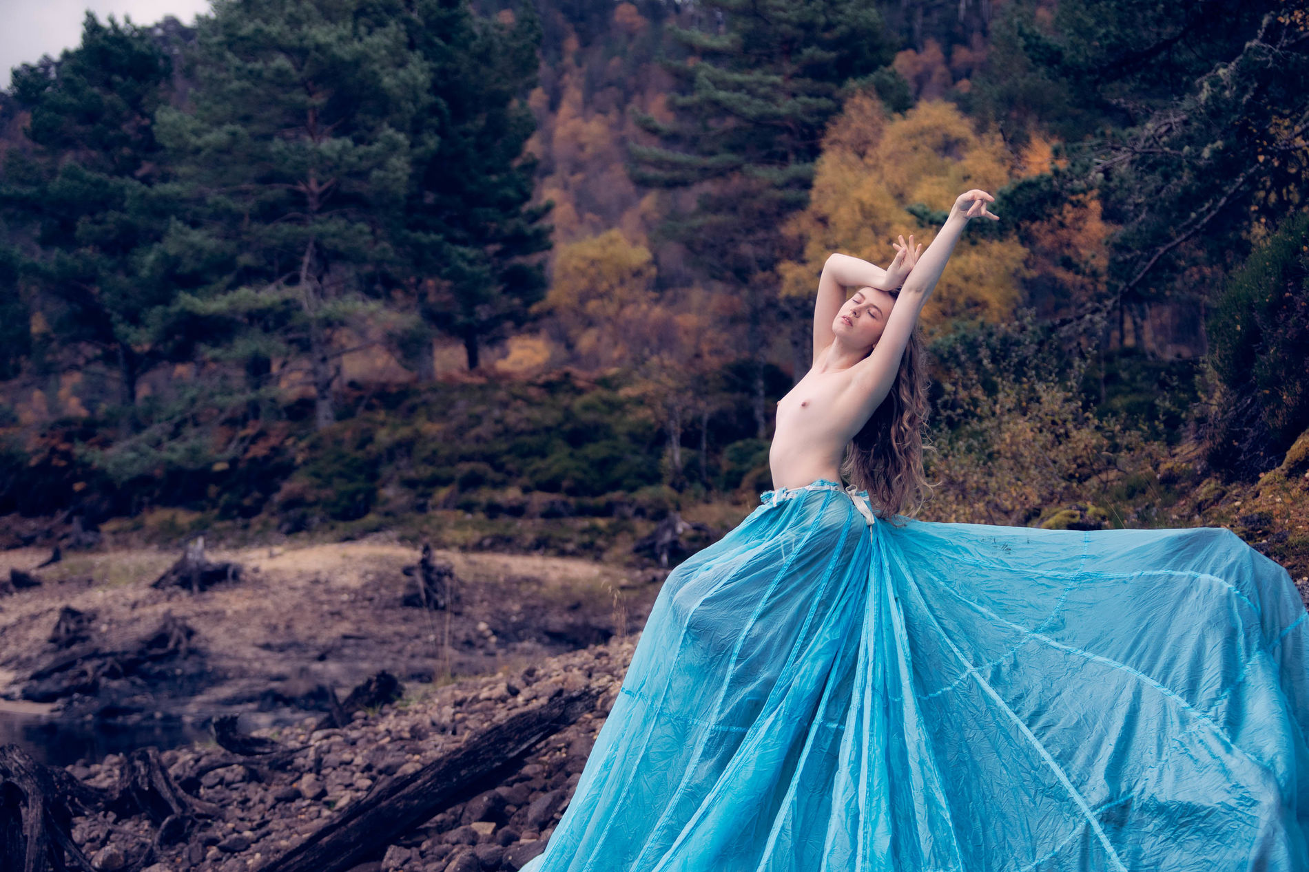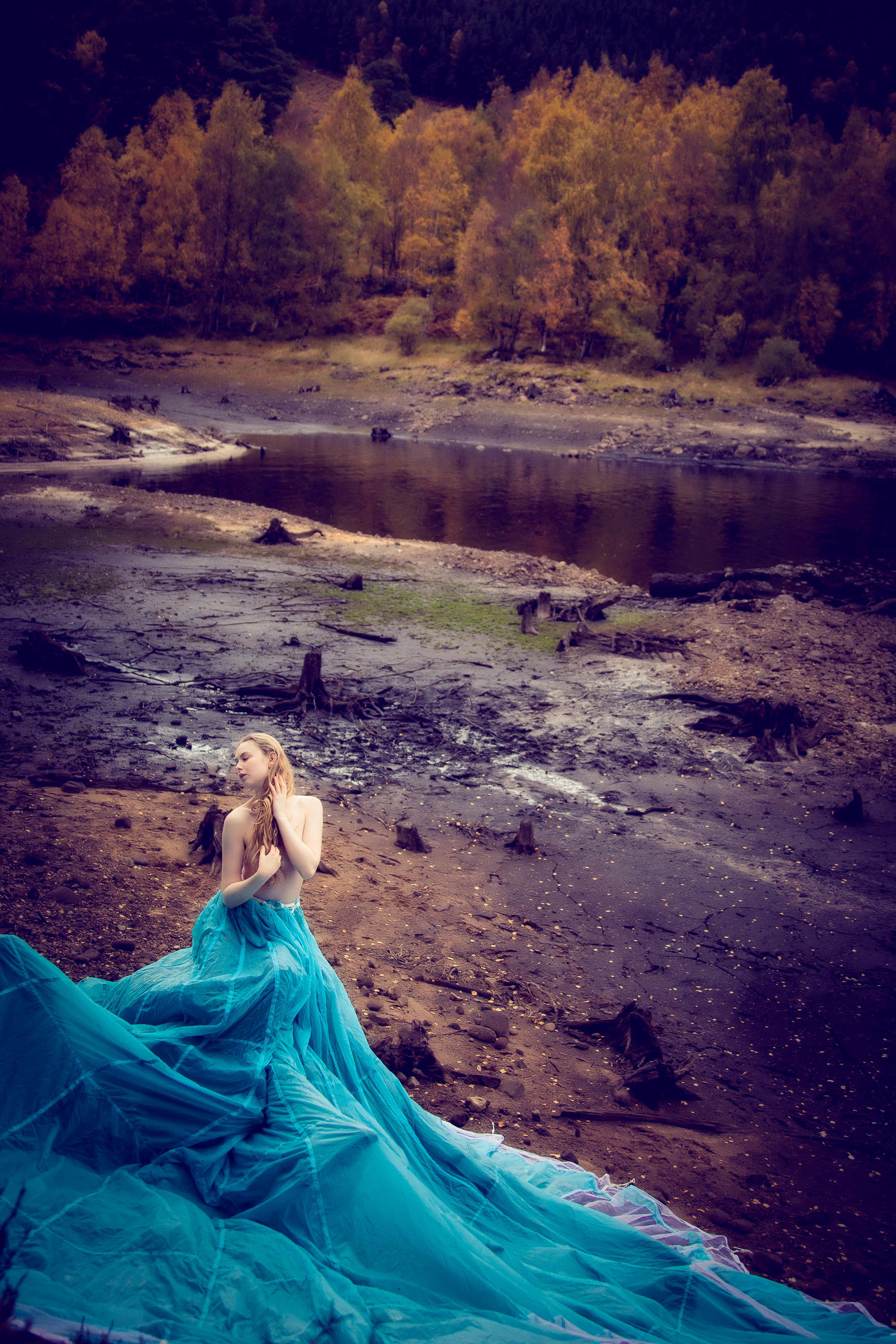 Блондинка среди ветреных холмов Шотландии