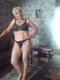 Сексуальная зрелая женщина застенчиво демонстрирует свои прелести.