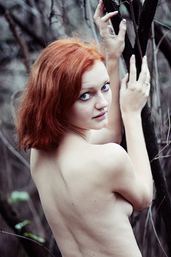 Рыжеволосая красавица в окружении осеннего леса*