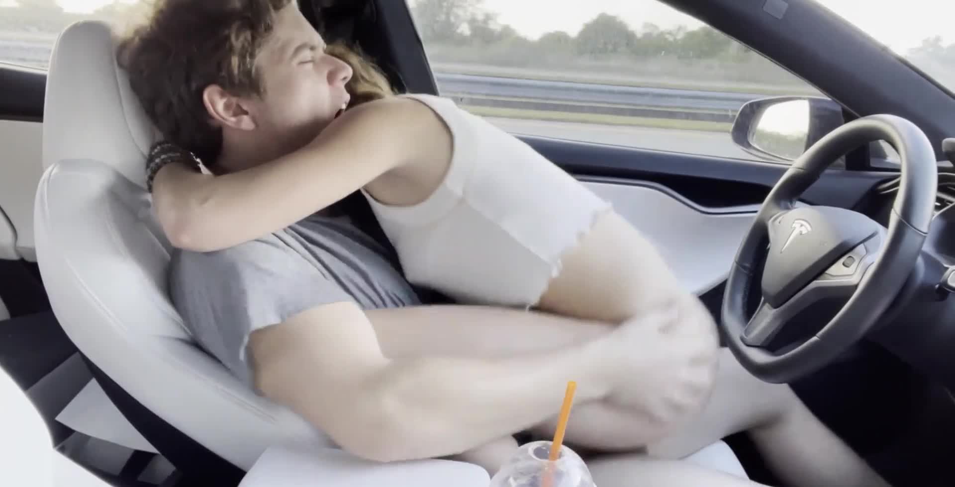 Молодая пара занимается страстным сексом во всех возможных позах, находясь за рулем автомобиля Tesla на шоссе, который в тот момент работал в режиме «автопилота».