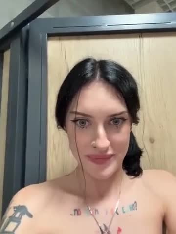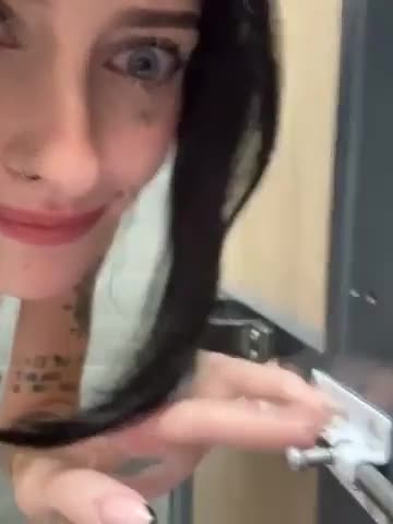 Девушка с татуировками и пирсингом мастурбирует в общественном туалете.
