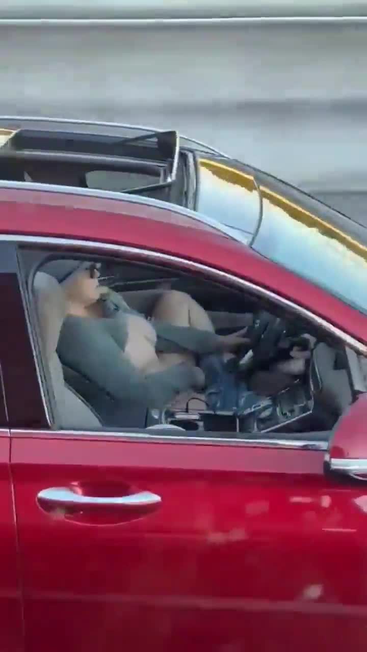 Женщина в красной машине почувствовала потребность в оргазме во время поездки, а места для парковки не было.