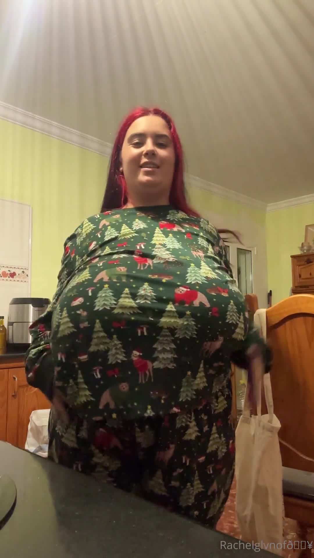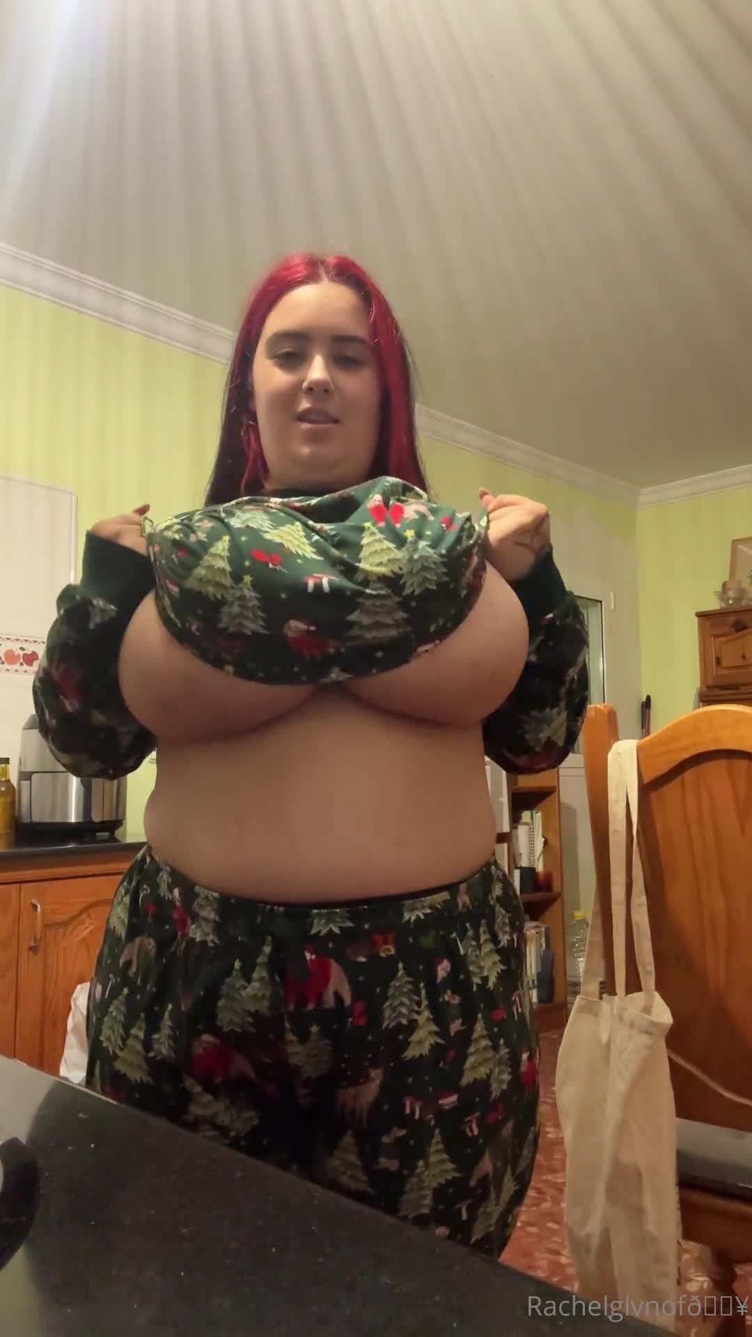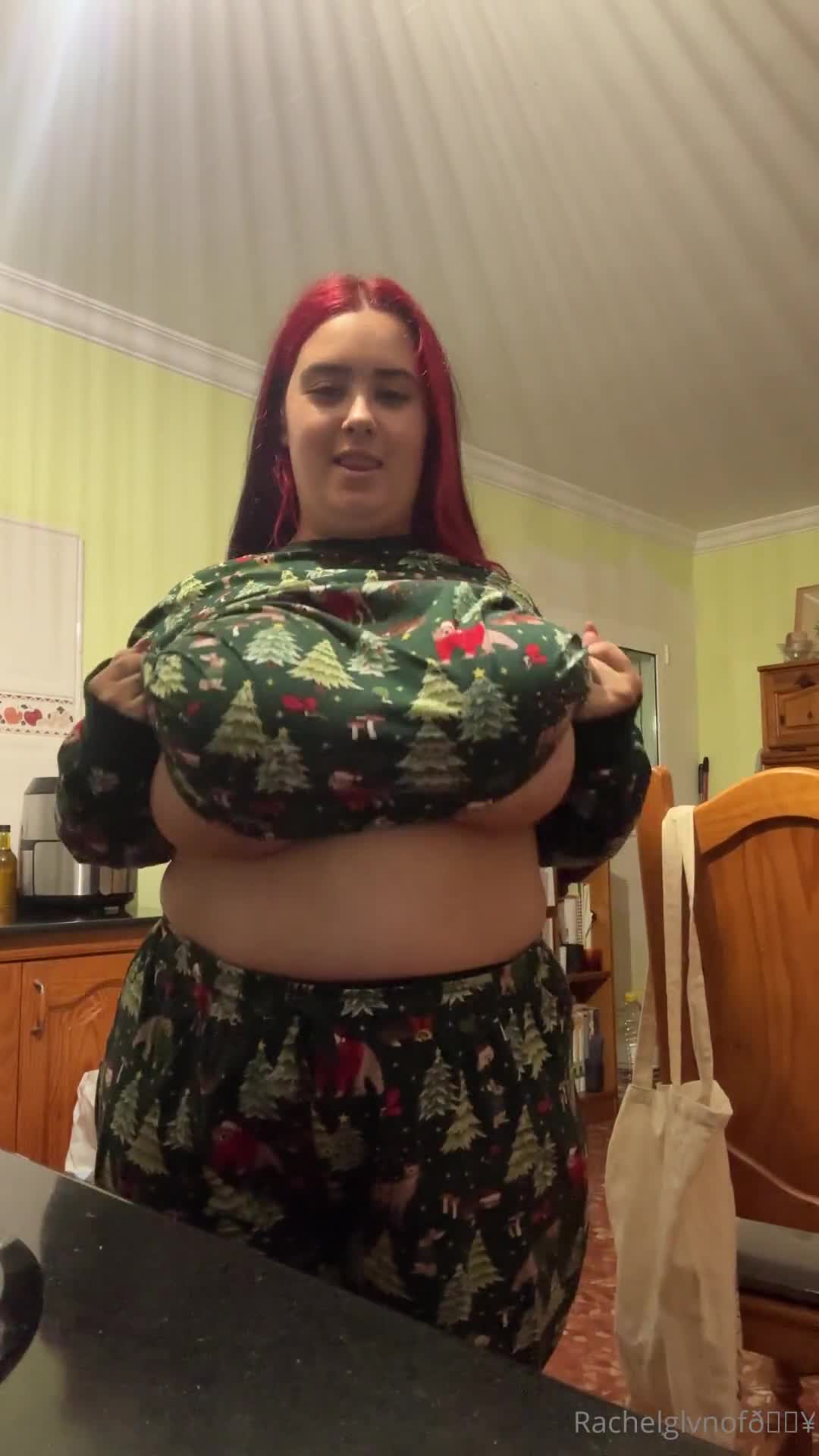 Девушка с невероятно пышной грудью приподняла пижаму, обнажив всю прелесть своего бюста.