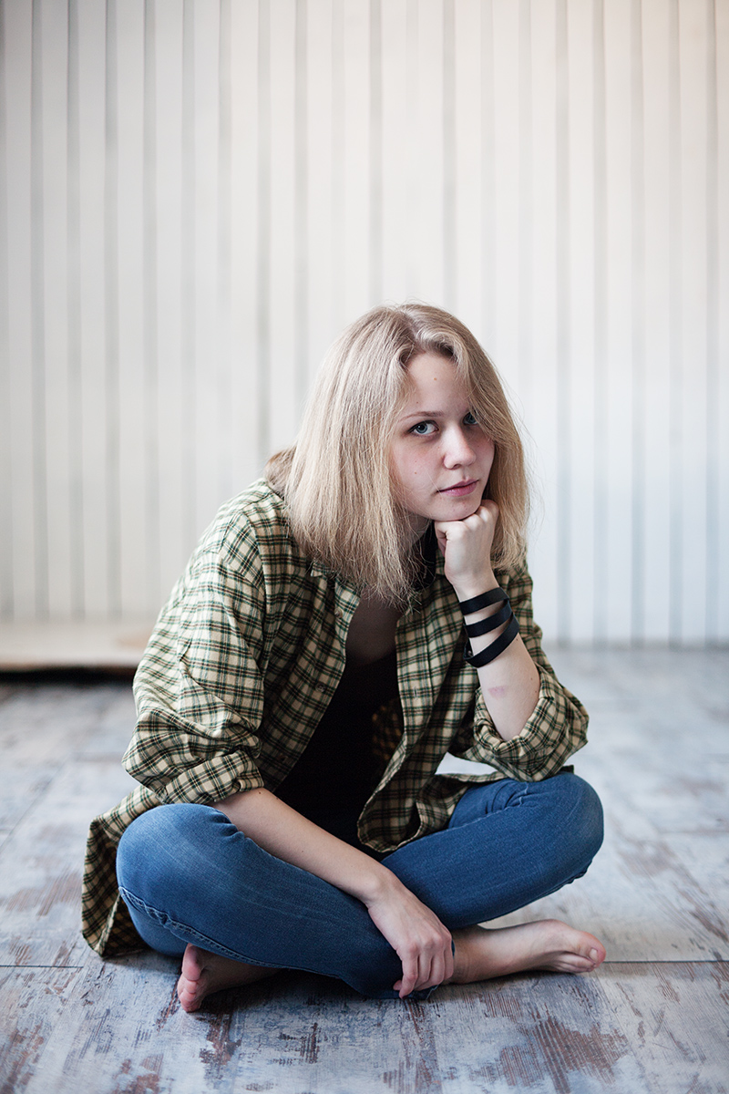 Молодая, невинная девушка демонстрирует свои свежие прелести.