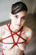 Обнажённая девушка, связанная красной верёвкой.