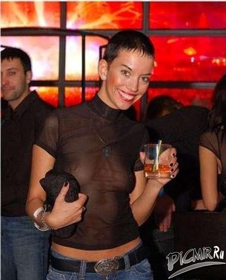 Чёрный прозрачный топ в баре безусловно к ней внимание мужчин всего бара привлекает.