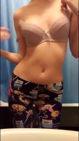 Стройная деваха делает не скромное селфи в ванной попутно возбуждая себя шаловливыми пальчиками