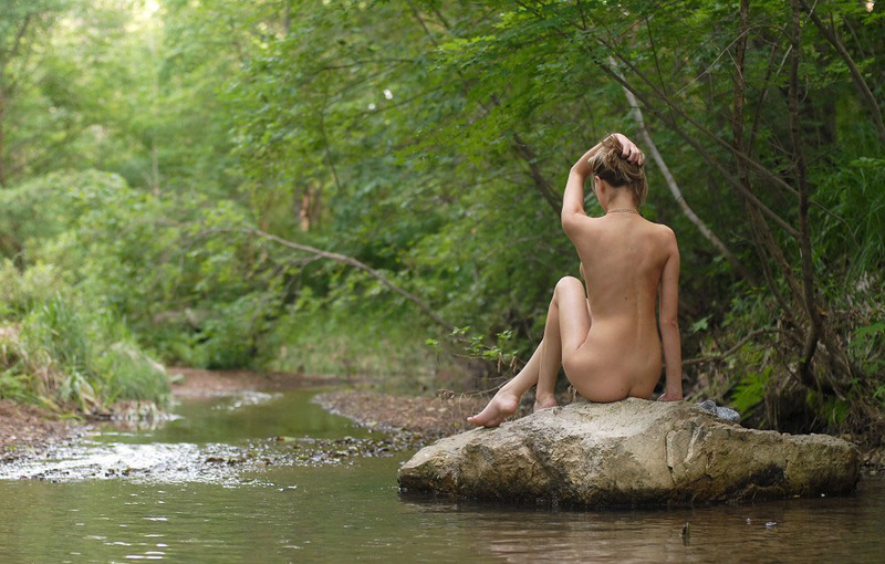 Очаровательно красавица Надежда у маленькой речушки обнажённой позирует!