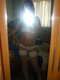 Молодая девушка фотографирует себя в зеркале и выставляет свои рабочие дырочки